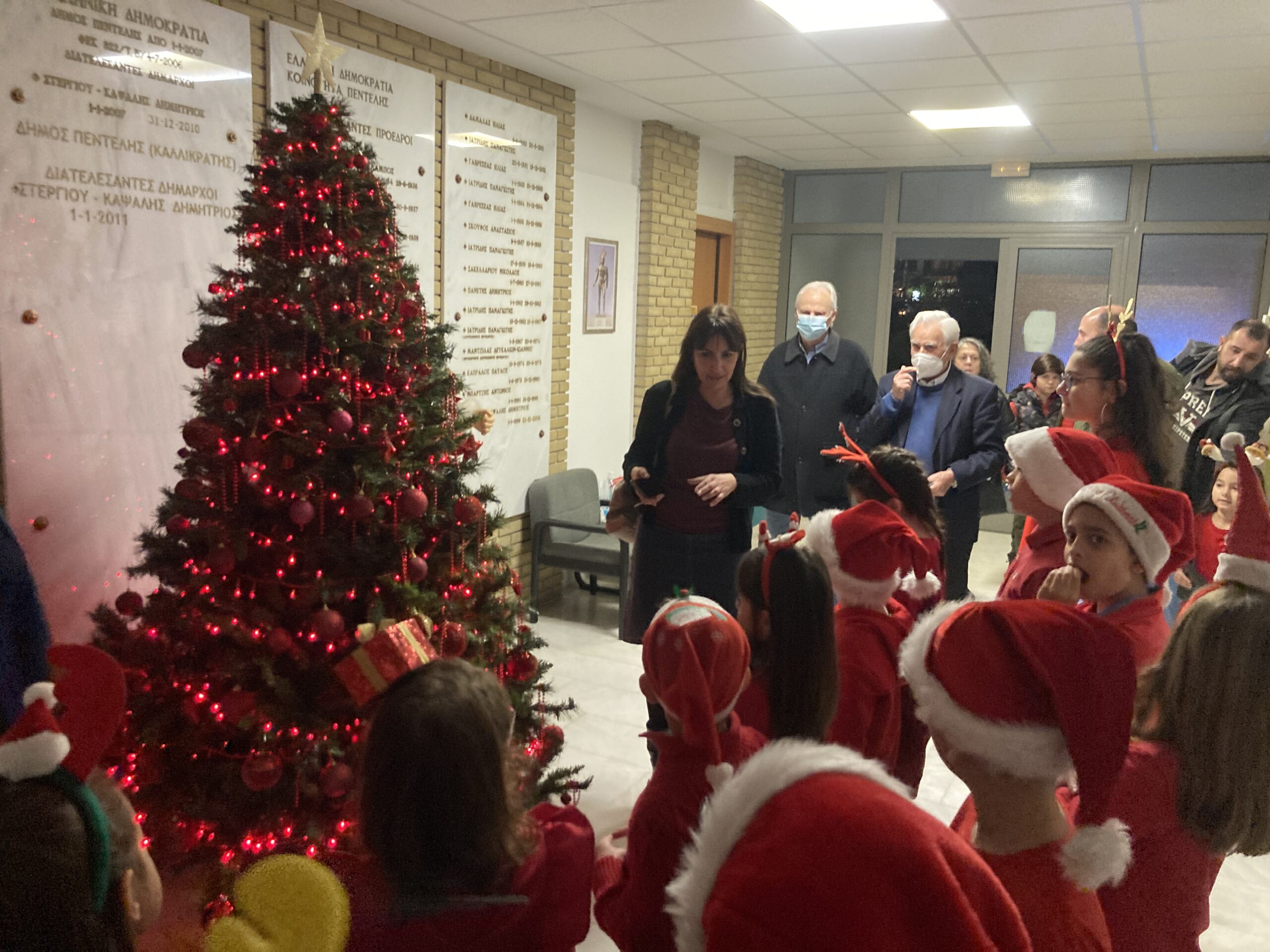 Πλήρως ανακαινισμένη και τεχνολογικά εξοπλισμένη η αίθουσα εκδηλώσεων του δημοτικού καταστήματος Πεντέλης άνοιξε τις πόρτες της χθες και φιλοξένησε μία παιδική χριστουγεννιάτικη γιορτή με τα κάλαντα της Πρωτοχρονιάς από την παιδική χορωδία του Δήμου, υπό την καθοδήγηση της Μαέστρου Κατερίνας Παπακωνσταντίνου, τη θεατρική παράσταση «Πού ζει ο Αϊ Βασίλης;» με ζωντανή μουσική και την ενεργή συμμετοχή των παιδιών, ενώ στο κλείσιμο προσφέρθηκαν δώρα στα μικρά παιδιά.
