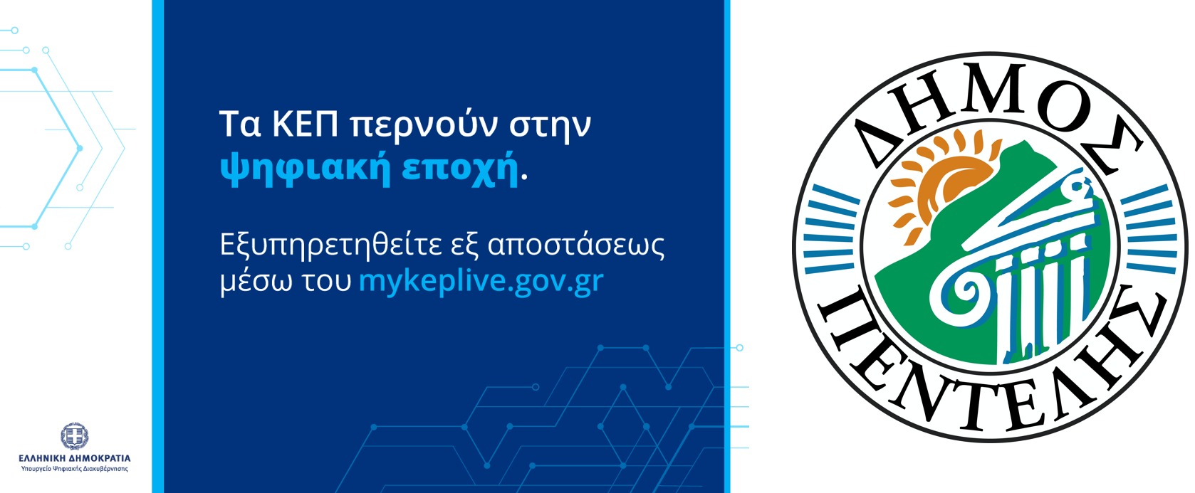 Ένα επιπλέον βήμα για την καλύτερη ψηφιακή εξυπηρέτηση των πολιτών από το Δήμο αποτελεί η ένταξη του ΚΕΠ 0790 Μελισσίων του Δήμου Πεντέλης στο Πρόγραμμα myKEPlive του Υπουργείου Ψηφιακής Διακυβέρνησης. Συνάμα η ένταξη του ΚΕΠ συμβάλει στην προσπάθεια για περιορισμό της επέκτασης του Covid-19.