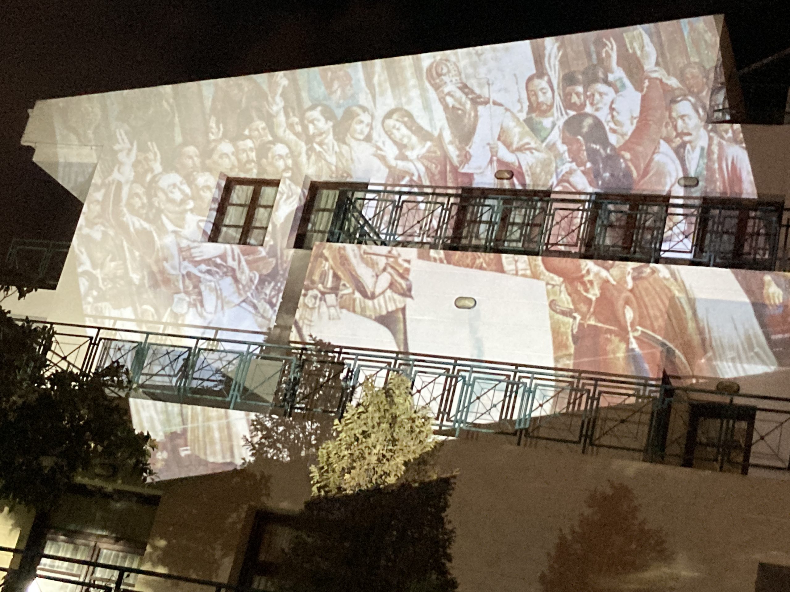 Στα φωταγωγημένα Δημαρχείο και Πολιτιστικό Κέντρο είχαν αναρτηθεί από την παραμονή, αλλά και ανήμερα της Εθνικής Επετείου, απεικονίσεις της Επανάστασης και των αγωνιστών για την Ελευθερία, ως ελάχιστος φόρος τιμής στους ήρωες του 21.