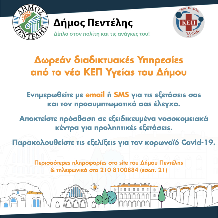 Ειδικά τώρα που η διαδικτυακή πρόσβαση είναι αναγκαία λόγω των μέτρων που ισχύουν για τον περιορισμό της εξάπλωσης του Covid-19, το ΚΕΠ Υγείας του Δήμου μας αναβαθμίζει τις υπηρεσίες του Δήμου με τον καλύτερο δυνατό τρόπο, ώστε να παρέχει ικανοποιητικές υπηρεσίες προληπτικής ιατρικής φροντίδας στους δημότες».