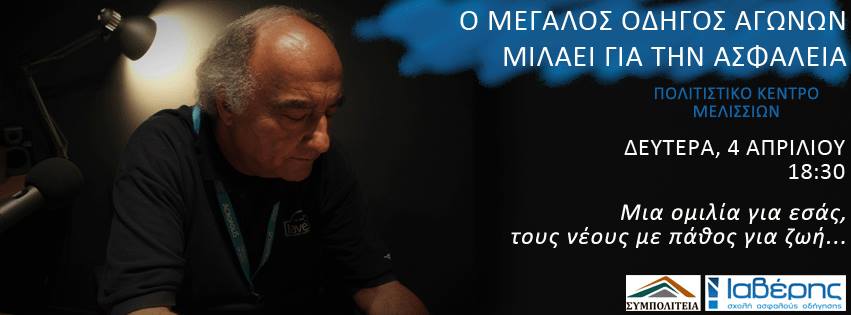 Η ΣΥΜΠΟΛΙΤΕΙΑ σε συνεργασία με τον γνωστό οδηγό αγώνων Ιαβέρη, οργανώνει ενημερωτική εκδήλωση για την οδική ασφάλεια, ένα ζήτημα που απασχολεί την κοινωνία μας πολλά χρόνια τώρα.