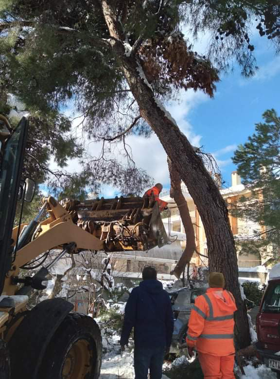 Οι υπηρεσίες του Δήμου, μαζί με τα ιδιωτικά συνεργεία που μισθώνει Δήμος απομακρύνουν καθημερινά με διπλές βάρδιες, πάνω από 100 σημεία κλαδιών και κορμών δέντρων. Παράλληλα χάρη στις προσπάθειες της υπηρεσίας καθαριότητας του Δήμου, η αποκομιδή των απορριμμάτων επανήλθε μέσα σε δύο μέρες από τον αποχιονισμό στην κανονικότητα.
