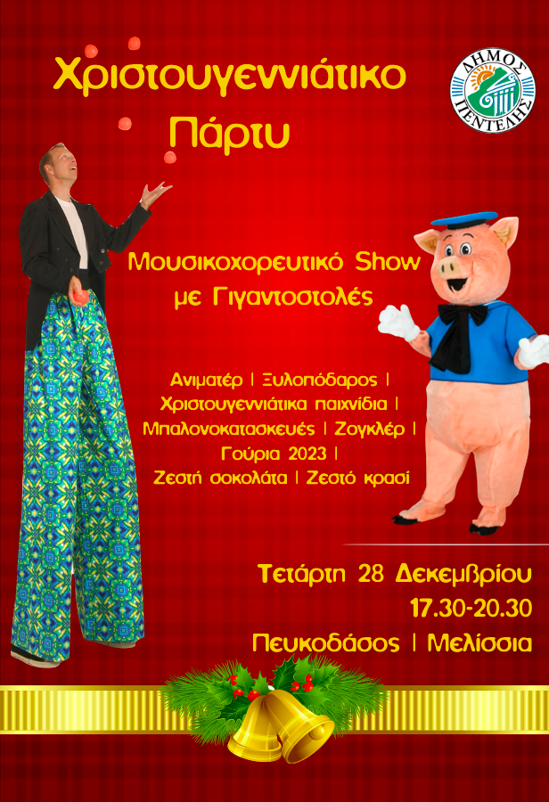 Χριστουγεννιάτικη μουσικοχορευτική παράσταση, παιχνίδια, χριστουγεννιάτικο limbo, μπαλονοκατασκευές και εργαστήρι για γούρια 2023, ζογκλέρ και ξυλοπόδαρος θα μας κρατήσουν συντροφιά και θα απολαύσουμε ζεστή σοκολάτα και ζεστό κρασί.