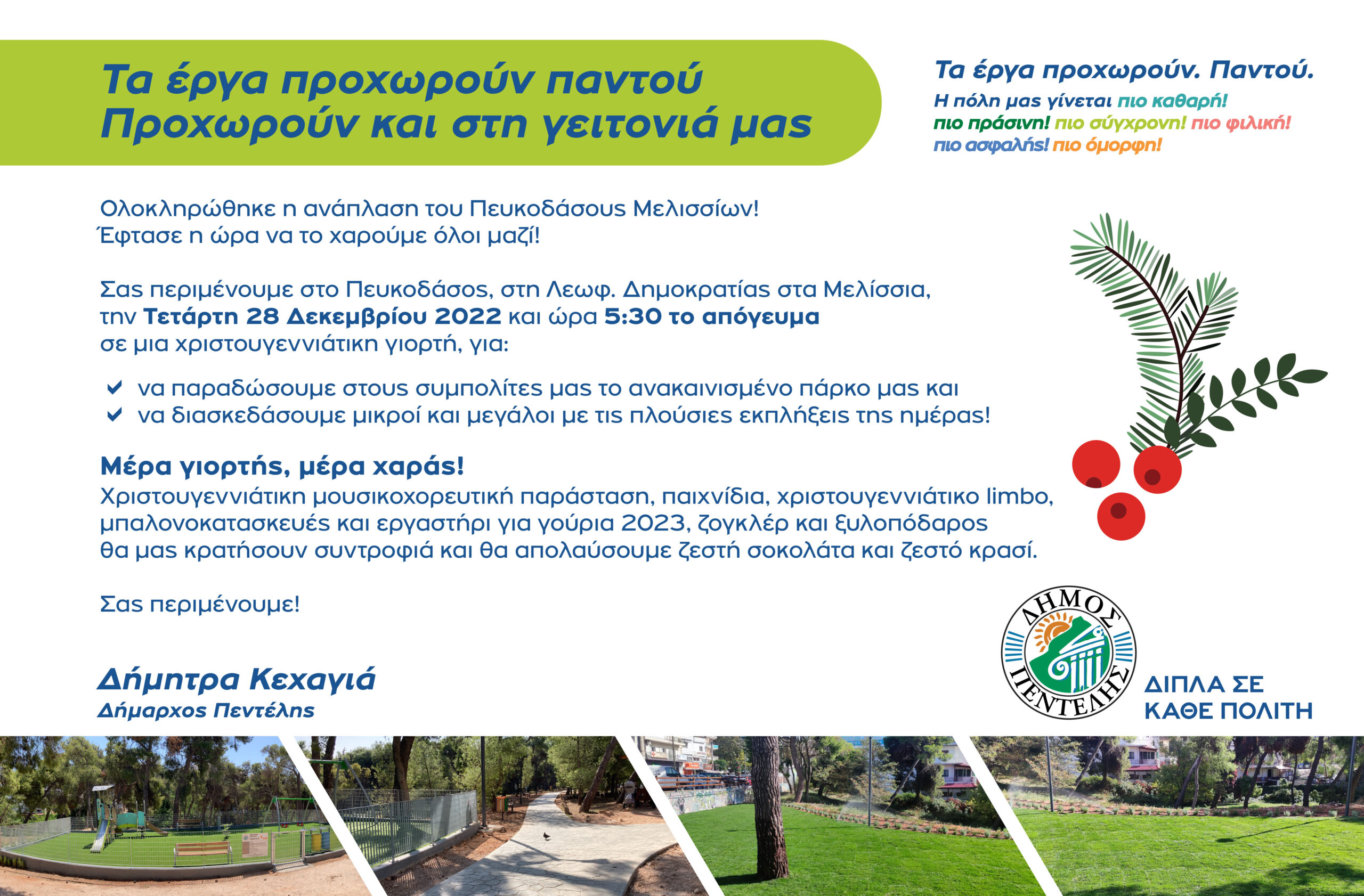 Σας περιμένουμε στο Πευκοδάσος, στη Λεωφ. Δημοκρατίας στα Μελίσσια, την Τετάρτη 28 Δεκεμβρίου 2022 και ώρα 5:30 το απόγευμα