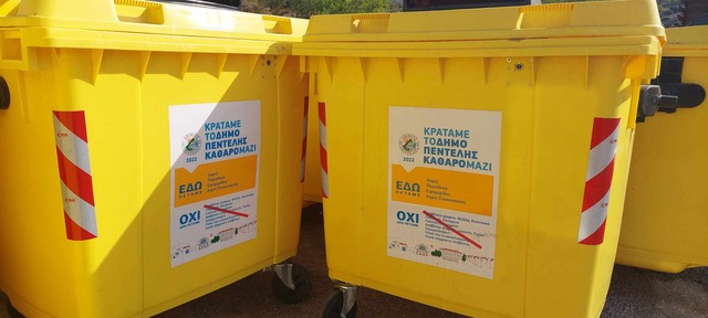 Πάνω από 150 νέοι κάδοι χαρτιού τοποθετήθηκαν σε κεντρικά σημεία του Δήμου Πεντέλης. Στους νέους κάδους, με το χαρακτηριστικό κίτρινο χρώμα, οι πολίτες μπορούν να απορρίπτουν τα χάρτινα απόβλητά τους. Παράλληλα έγινε και καλύτερη χωροθέτηση των κάδων, προκειμένου οι πολίτες να έχουν πιο οργανωμένα σημεία για την απόρριψη των αποβλήτων τους.