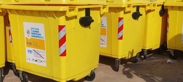 Η τοποθέτηση κίτρινων κάδων θα συνεχιστεί και θα ολοκληρωθεί τις επόμενες μέρες και σε άλλα σημεία της πόλης.