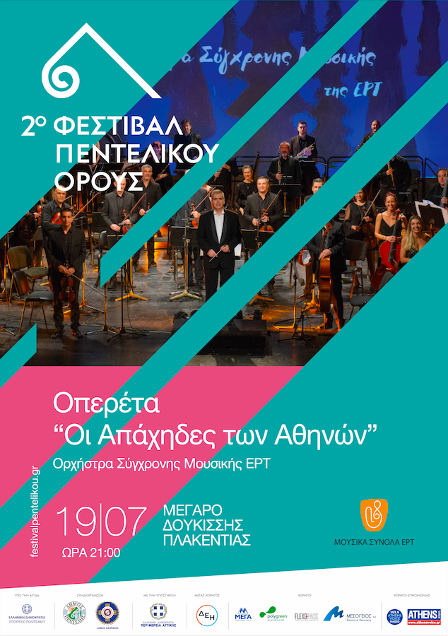 Στο πλαίσιο του 2ου Φεστιβάλ Πεντελικού την Τετάρτη 19/7 και ώρα 9 μ.μ. στο Μέγαρο Δουκίσσης Πλακεντίας, παρουσιάζεται η Οπερέτα “Οι Απάχηδες των Αθηνών” από την Ορχήστρα Σύγχρονης Μουσικής ΕΡΤ.