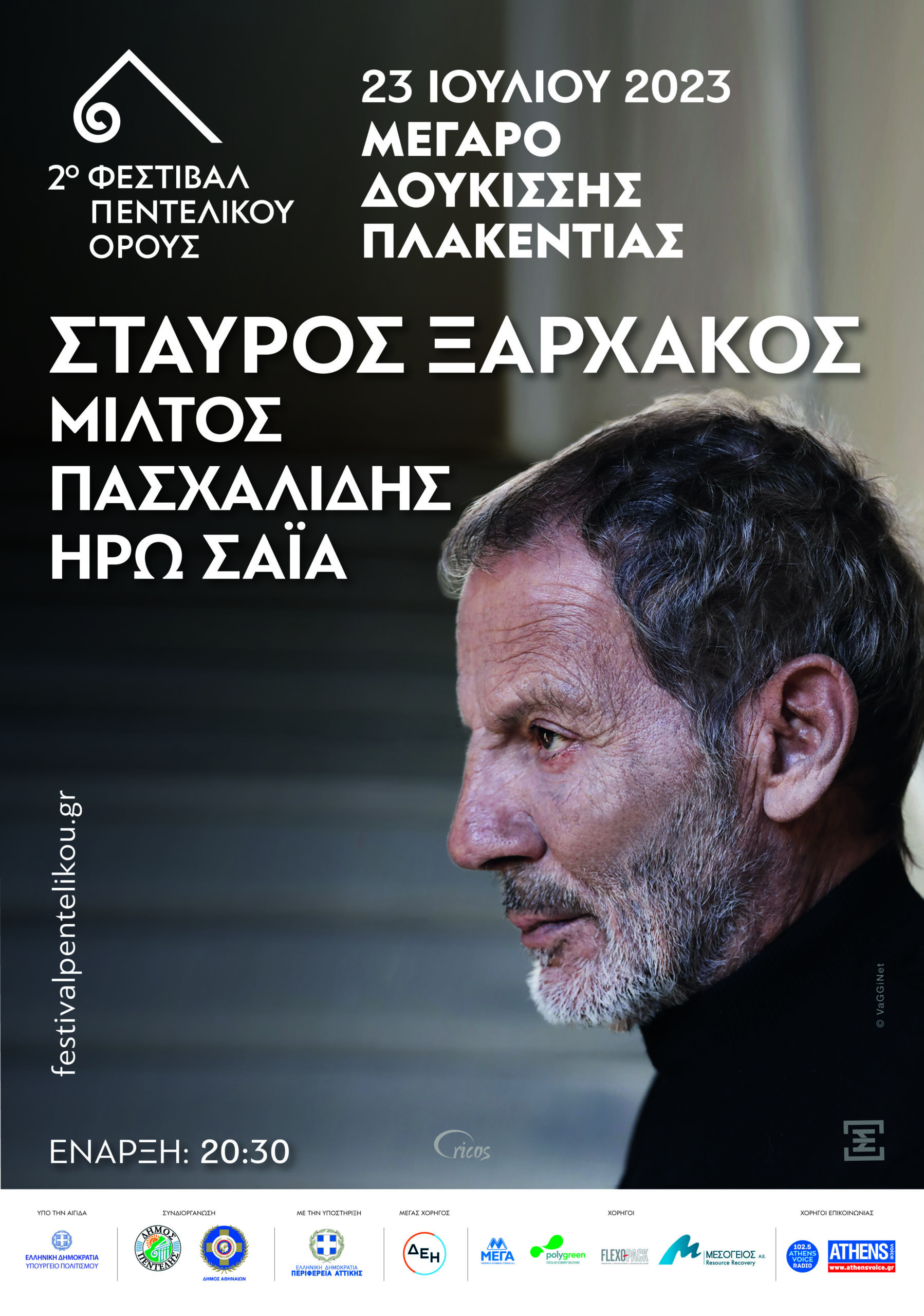 Συνεχίζονται οι εκδηλώσεις του 2ου Φεστιβάλ Πεντελικού. Την Κυριακή 23 Ιουλίου στις 8.30 ο Σταύρος Ξαρχάκος στο Μέγαρο Δούκισσας Πλακεντίας, παρουσιάζει ένα πρόγραμμα με τα πιο αγαπημένα τραγούδια του. Στο πλευρό του δύο σπουδαίοι ερμηνευτές, ο Μίλτος Πασχαλίδης και η Ηρώ Σαΐα. Ο ίδιος ο Σταύρος Ξαρχάκος διευθύνει πολυμελή ορχήστρα κορυφαίων σολίστ.