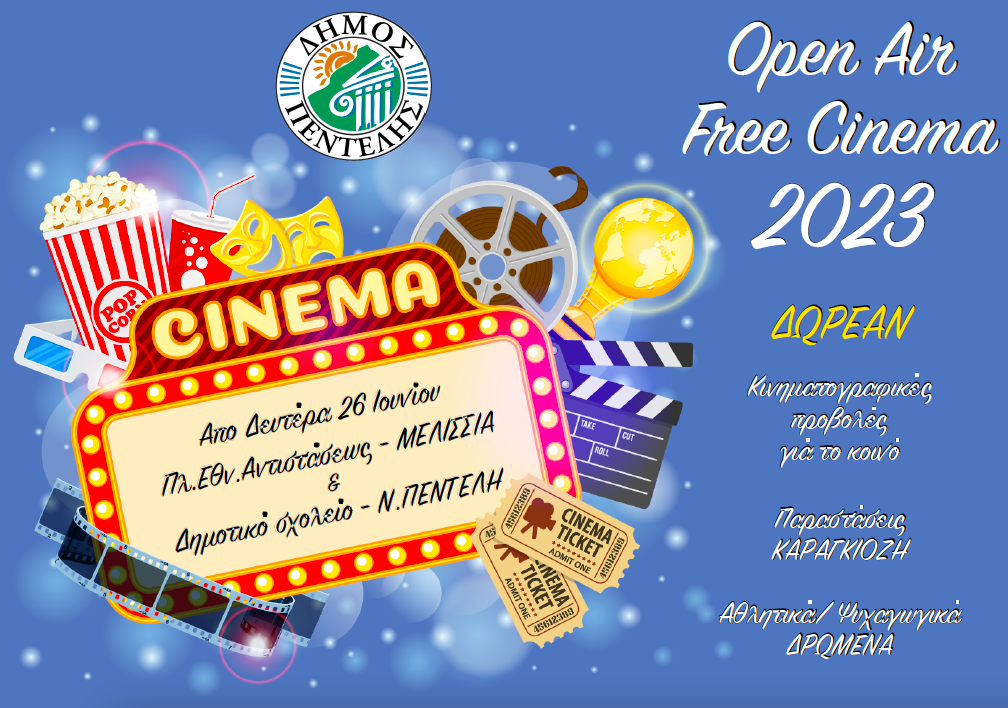 Για 4η συνεχόμενη χρονιά ο Δήμος Πεντέλης προσφέρει καλοκαιρινές κινηματογραφίες βραδιές. Θα γίνουν 40 προβολές, συνολικά 20 ταινιών που απευθύνονται σε μικρούς και μεγάλους. Έτσι οι κάτοικοι της πόλης θα έχουν την ευκαιρία να απολαύσουν μια ανάπαυλα ψυχαγωγίας και το φετινό καλοκαίρι.