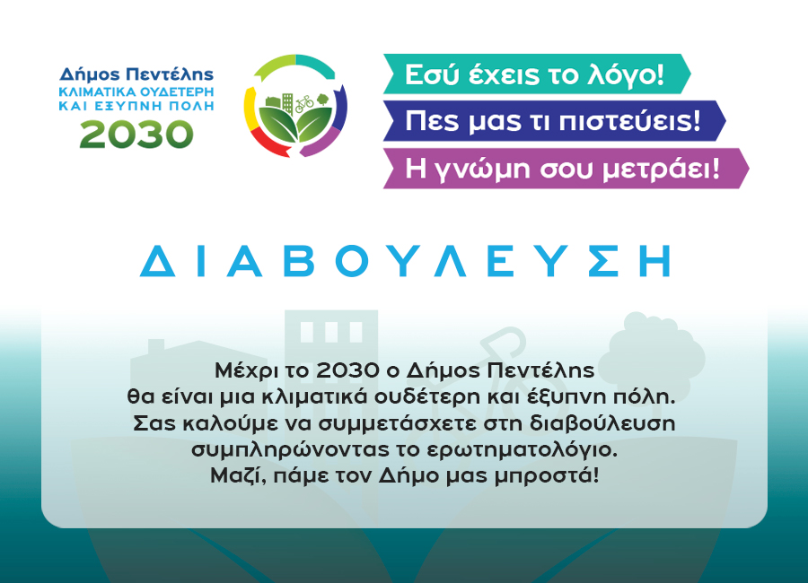 Σήμερα ο Δήμος Πεντέλης ξεκινά τη διαβούλευση με τους πολίτες με ένα ερωτηματολόγιο, που διερευνά τις απόψεις τους πάνω στο θέμα.