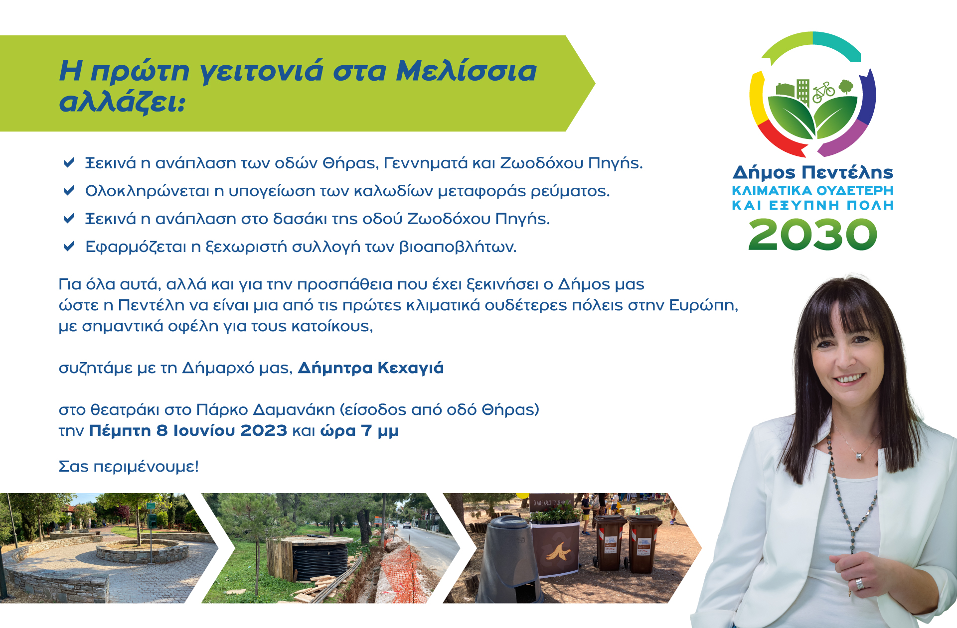 Για όλα αυτά, αλλά και για την προσπάθεια που έχει ξεκινήσει ο Δήμος μας ώστε η Πεντέλη να είναι μια από τις πρώτες κλιματικά ουδέτερες πόλεις στην Ευρώπη, με σημαντικά οφέλη για τους κατοίκους,