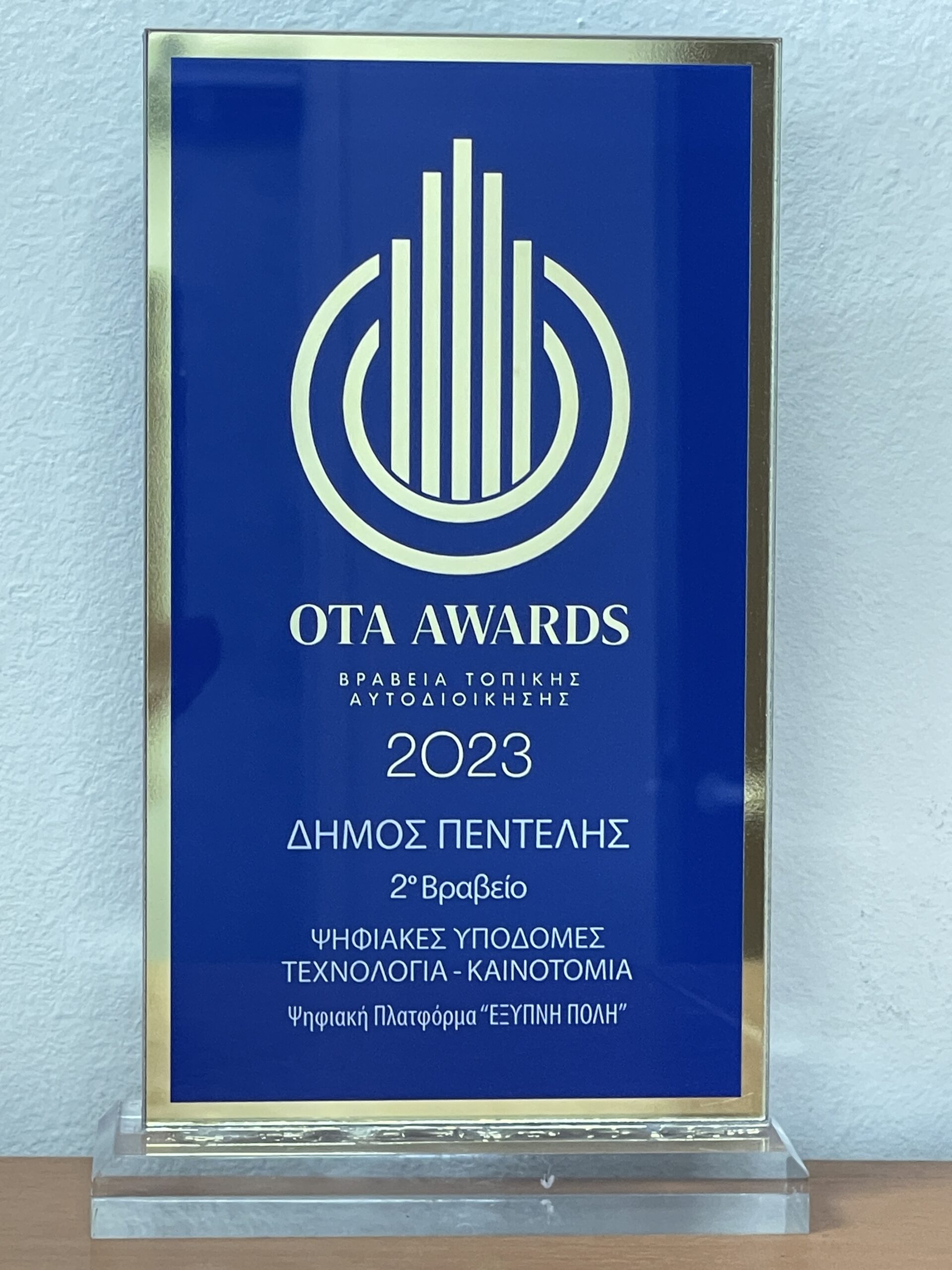 Με το 2ο Βραβείο στην Κατηγορία «Ψηφιακές Υποδομές – Καινοτομία Τεχνολογία» βραβεύθηκε ο Δήμος Πεντέλης στα Βραβεία Τοπικής Αυτοδιοίκησης 2023.