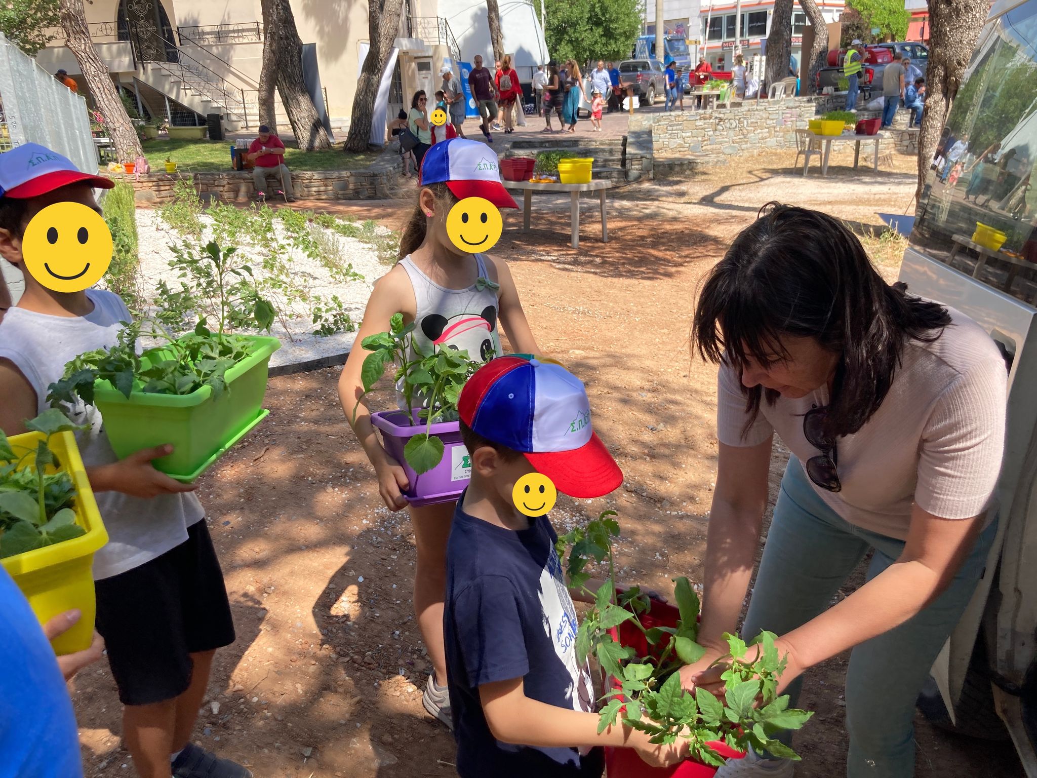 Παράλληλα, μέσα από το παιγνίδι και τις βιωματικές δράσεις, είχαν την ευκαιρία να φυτέψουν ντομάτες, πιπεριές, αγγούρια, κολοκυθάκια, μελιτζάνες κ.α., δημιουργώντας το δικό τους μικρό μποστάνι που το πήραν μαζί τους μαζί με αναμνηστικά δώρα, καπέλα και τσάντες.